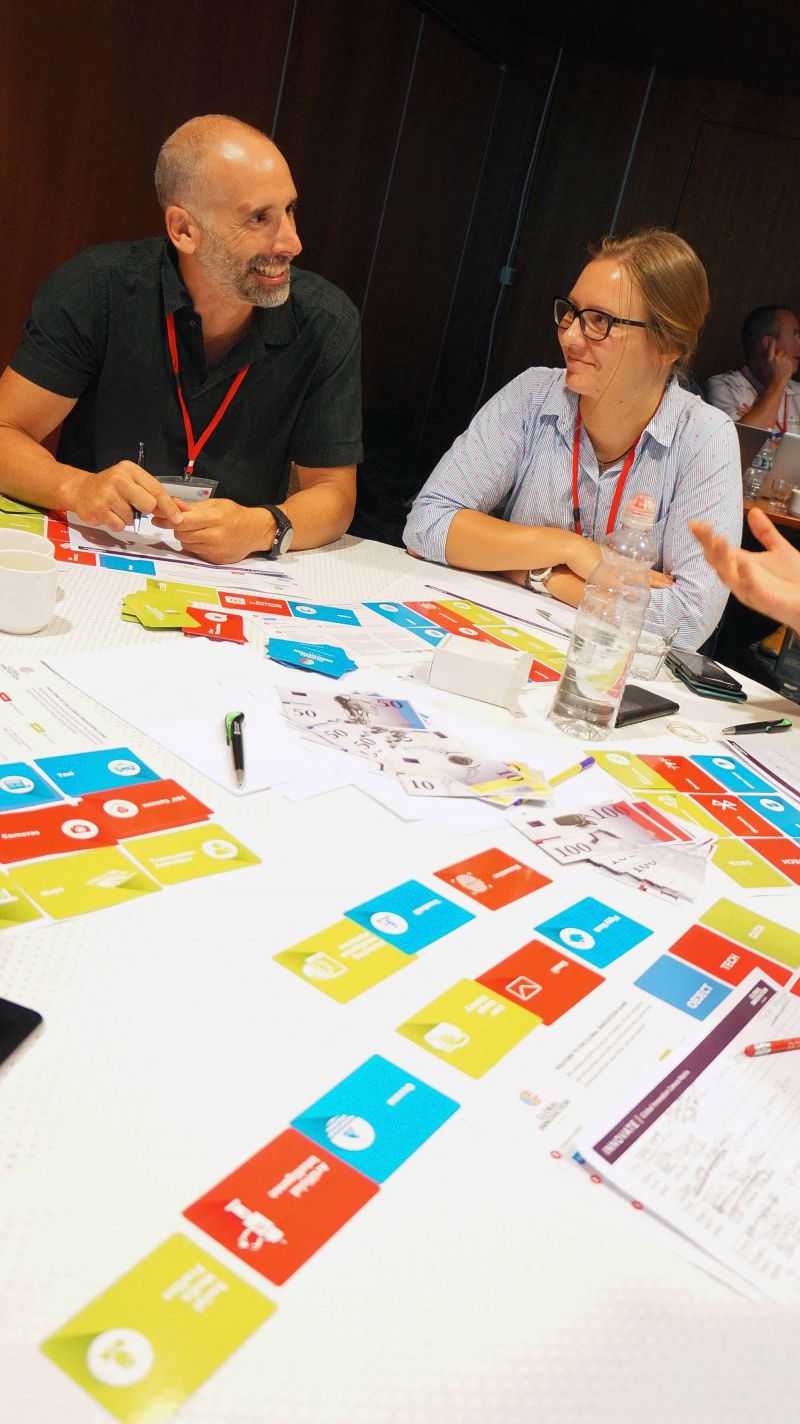 Innovate: Team members then choose a card of each colour and create either a Smart Object, Service or Tool.